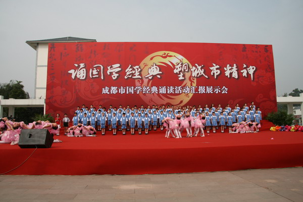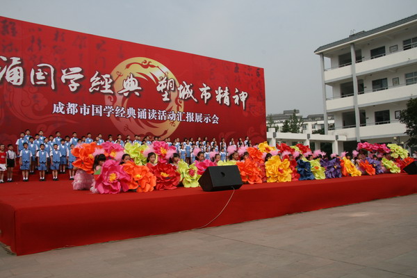 6月2日上午,我校学生应邀参加了在郫县子云学校举行的成都市国学诵读展示活动。本次活动由成都市教育局主办,全市共有五所学校参加汇报演出。我校承担的《花重锦官城》做为压轴节目进行了展演。成都市委书记李春城及市上的有关领导观看了演出。我校编排的节目准备精心,形式新颖,既很好地体现了国学意韵,又很好地彰显了成都精神,成为整台演出的一大亮点。