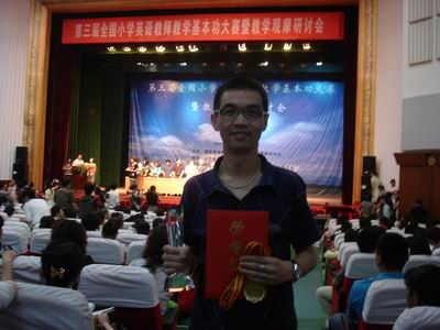 我校英语组潘小平老师的录像课例被成都市教科所推荐到北京参加第三届全国小学英语课堂教学优秀课展评,荣获一等奖, 由他所撰写的论文《英语说课设计与研究初探》也荣获全国一等奖。在此,我们特向全体师生报喜,向潘小平老师表示热烈的祝贺!