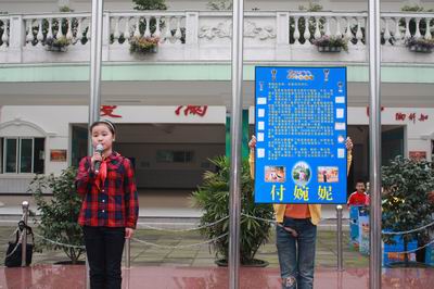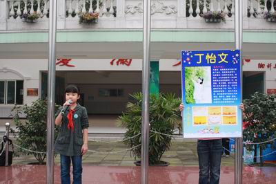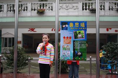 and made different slogans. In these activities, each child made a speech for self-recommendation. Some even showed