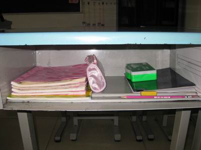 the desks and floor of each classroom being clean and tidy, and all the school things being kept in