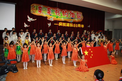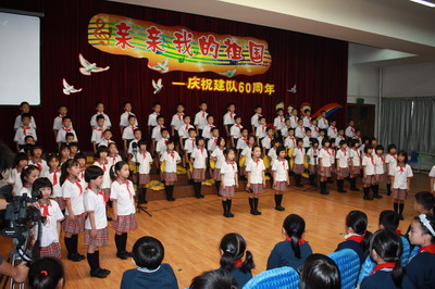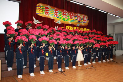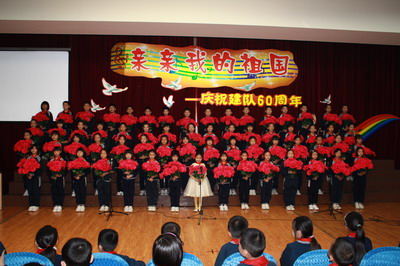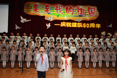10月13日下午,我校举行了主题为“亲亲我的祖国”——爱国歌曲展演活动,此项活动是本期爱国主义教学的系列之一,同时也以生动活泼的形式,纪念少先队建队60周年。