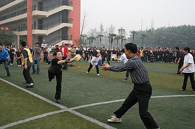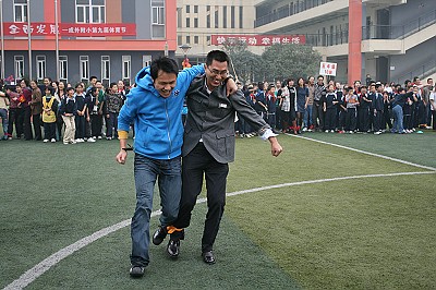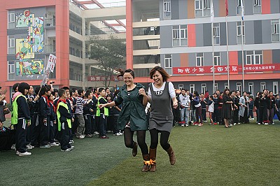 在同学们的比赛结束以后,老师们也参加了趣味比赛