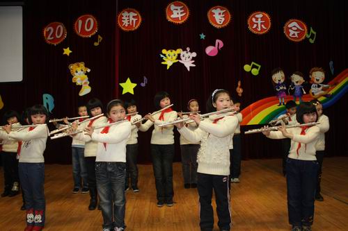 2010年1月13日下午,我校隆重举行了2010年新年音乐会。学校民乐队、管乐队以及教学老师为我们送上了精彩的节目,赢得了现场观众的阵阵掌声。我校在“一体两翼”的办学思想指导下,坚持开展艺术教育至今硕果累累,并被四川省评为艺术特色学校。这是社会各界对学校艺术教育的肯定,同时也对学校的艺术教育提出了更高的要求。我们将在更广阔的领域,为孩子们提供更多的展示自己的机会,真正实施让每个孩子都能个性发展的素质教育。