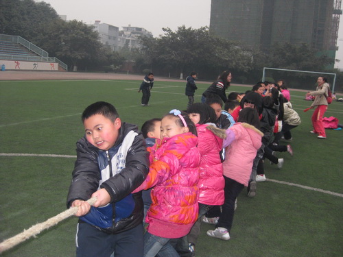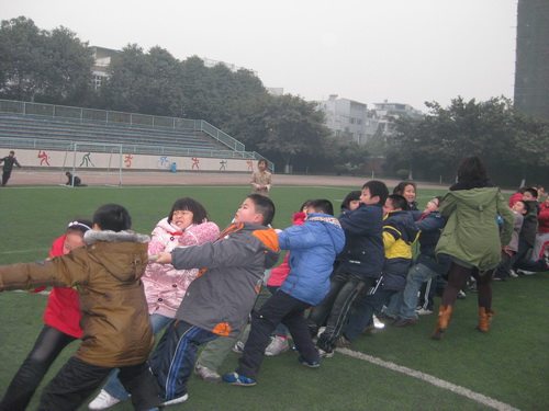 2009年1月15日下午,二至四年级拔河比赛(决赛)在后操场举行。进入决赛的班级在赛场上一决高下,争夺年级的冠亚军。