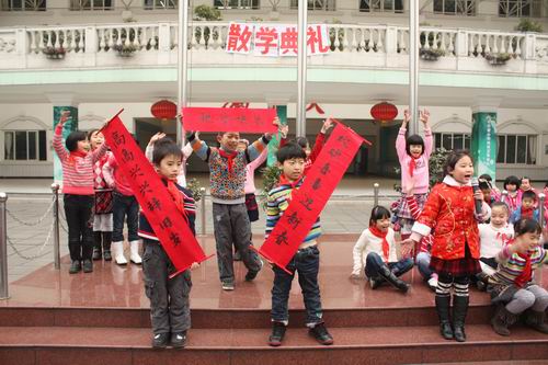 随着时光的推移,紧张而又满载收获的一个学期就这样结束了。2010年1月26日下午,我校本部1-4年级学生举行了精彩而又隆重的散学典礼。典礼上,由吴校长对一学期的各项工作进行了小结,肯定了全体师生的辛勤劳动和所取得的优秀成绩,并对各级领导和学生家长一直以来给予的关心、指导、支持和配合表示感谢;同时,吴校长也对孩子们的假期生活提出了合理化的建议,要求我们一定要紧记安全,度过一个安全、愉快的假期。