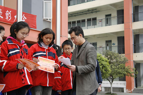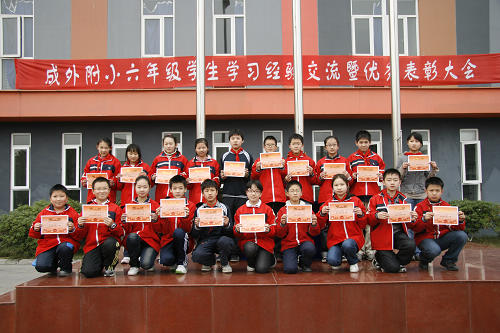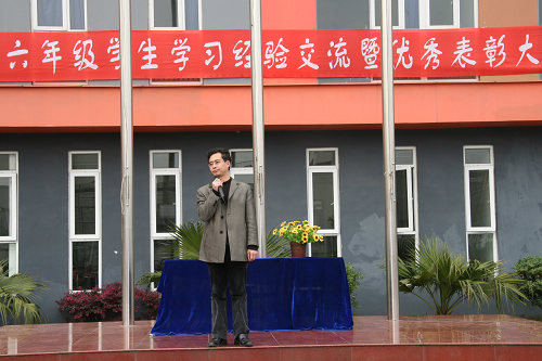 On the afternoon of Mar. 26, the sixth-graders gathered in the playground to attend the grade meeting, which was themed by learning experiences sharing and commending of the outstanding students, the aim of which was to let the sixth graders share the learning experiences of those excellent students and achieve success during the upcoming entrance examinations for secondary schools.