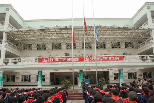 为沉痛悼念2010年4月14日在玉树藏族自治州玉树县7.1级地震中的遇难同胞,我校全体师生在4月21日早上7点49分举行集会,国旗降半旗致哀,随后全体默哀一分钟。