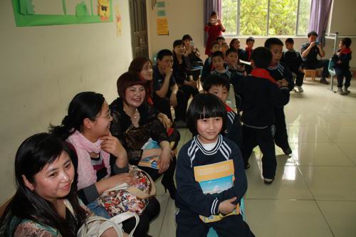 English and cheerful guitar. Some students’ parents also came to the classroom together with the children to participate