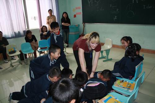 in the English classroom teaching given by the foreign teachers, making the classroom full of laughter.