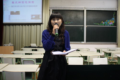 曾彩雁主任向大家介绍了观摩四川省第八届小学语文青年教师优质课竞赛的感想