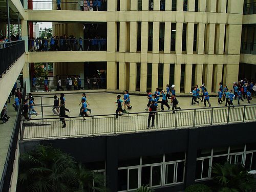 The drill began at 2:05 p.m. No sooner had the students heard the signals than they immediately evacuated out of the