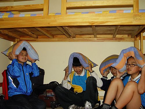 On May 13, 2010, the Zhonghai Campus PSACFLS launched an earthquake drill. The students have actively partici-