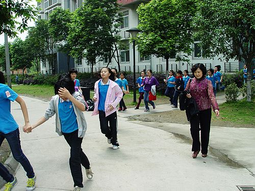 唐山、汶川、玉树,一个又一个的大地震唤起了人们对地震的关注。为提高同学们对地震的认识以及帮助他们了解如何在地震突发时有序地安全逃生,2010年5月13日下午,成外附小中海校区的老师们组织同学参与了地震预警演练。演练于2:05正式开始。同学们在听到预警信号后立刻撤离教室。在老师们的组织下,他们有序的奔跑至指定的安全地点。撤离过程中,同学们按照所学地震常识,都用书本或手臂遮挡住头部,让演练显得十分逼真。到达指定地点后,组织人员清点了人数并对演练过程中表现优异的班级和个人进行了表扬奖励。此后,他们对演练当中存在的问题与不足进行了说明并呼吁同学们去学习更多的地震常识,在地震到来时能做到临危不乱,安全逃生。整个演练持续了近半个小时,2:35演练圆满结束。