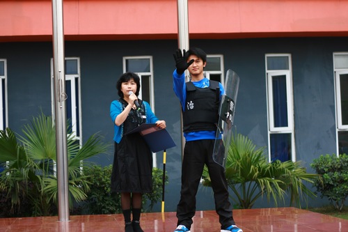 In order to enhance the security precautions of the campus and ensure the safety of all the teachers and students, Director Ms Guo of the M.E. Dept. launched a training on campus security precautions on the morning of May 17. Two PE tea-