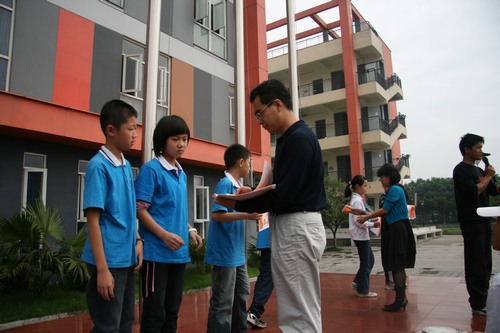 学校领导为获奖班级颁发奖状