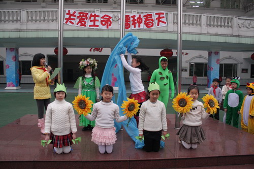 On February 25, the opening ceremony of new semester is held in our campus. Everything comes to life with hopefulness during the spring. The students of Grade three and four will develop the spare land into plantations, aspersing full green in campus. Let’s care life in the new semester with new hope.