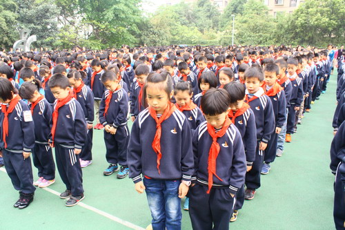 On April 22nd, the ninth week morning gathering was held in our campus, on which we mourned for the victims of the powerful earthquake in Yaan Lushan of