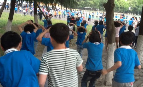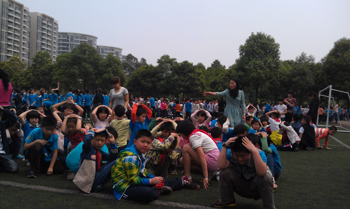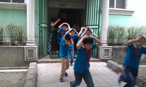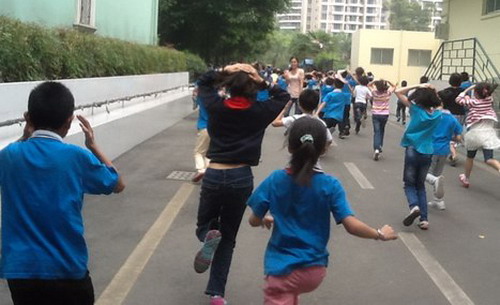At noon of April 26th, drill of earthquake escaping was held in dormitories. Under the management of teachers, students went the safe places quickly and orderly in arranged routes.