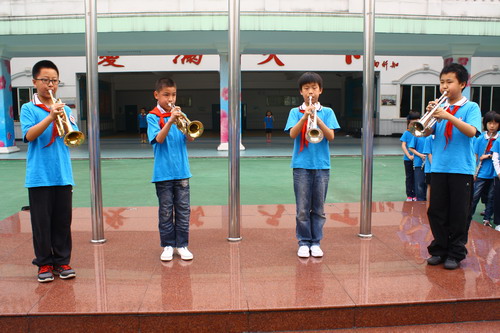 On May 13th, the twelfth week morning gathering was held in our campus. Chorus competition will be started and each class loses no time to rehearse. This competition is a major part of the art festival in our school. At first stage, students from every class sing the songs chosen by themselves. Then the winners will take part in the competition in the whole school. The rehearse is led by music teachers, which can improve students’ art skills and the sense of cooperation. On the meeting, the list of air model award was announced by Ms Wu. Finally, some students from bass band brought performance to the students.