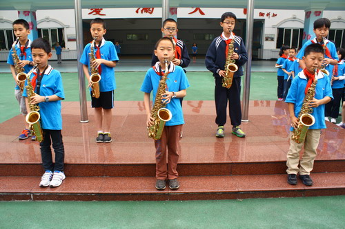管乐队的部分同学为合唱比赛表演助兴