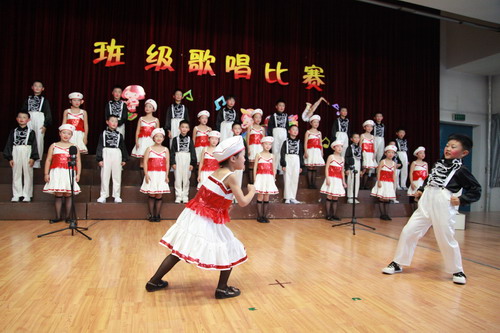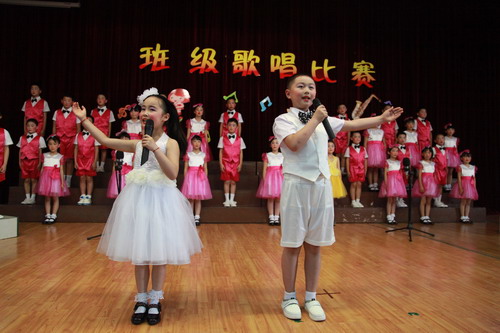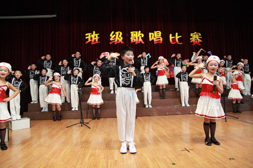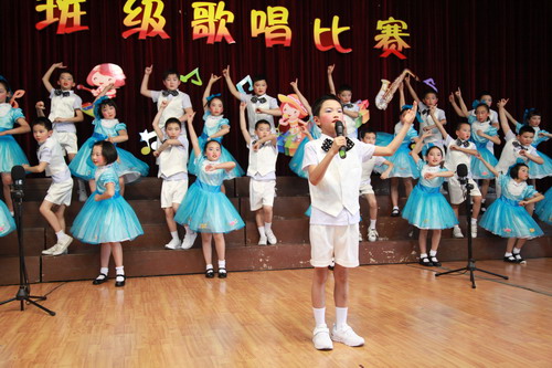 5月22号,我校“年级歌唱比赛”进入第三天,三年级的同学为大家带来了精彩的表演。不同风格的歌曲,形式各异的表演,颇具异国风情的服装让观众们进入了五彩缤纷的世界,体会到了美国、澳大利亚、内蒙、台湾等地方的音乐魅力。孩子们用他们天真烂漫笑容的诠释了生活的美好,更用他们稚嫩的歌喉唱出了童年的幸福。我们衷心祝愿孩子们能把这份快乐,这份美好,这份幸福永远保持下去!
