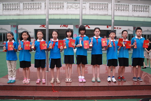 6月17日,我校举行第十七周集体朝会。本学期即将结束,回顾这一学期,同学们通过自己的努力取得了许多优异的成绩,有学习方面的,有艺术方面的,有科技方面的,有参与学校活动方面的。今天,我们为取得优异成绩的同学、班级颁发奖状、奖牌、奖品。希望同学们在以后的学习和生活中,再接再厉,学出快乐,活出精彩!