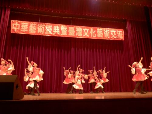 我校金太阳艺术团带着五个节目(当嘻哈遇芭蕾、舞动的精灵、鲁冰花、聪明的小白兔、芭比娃娃的梦)来到台湾,参加“2013中华艺术盛典暨台湾文化艺术交流”活动。这次艺术交流活动,于7月21日在台北新北市进行。两岸小朋友以舞蹈形式穿插进行交流,即一个台湾小朋友的节目,一个大陆小朋友的节目。我校金太阳艺术团的节目得到海峡两岸组委会领导、专家一致好评。海峡两岸组委会工作人员做了大量前期工作,使这次文化交流活动取得了圆满成功,也使孩子们收获多多。