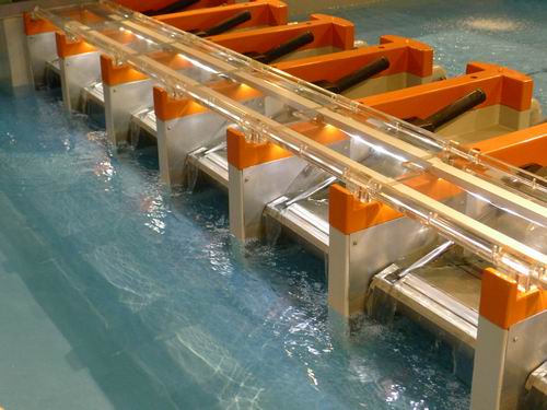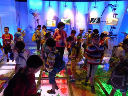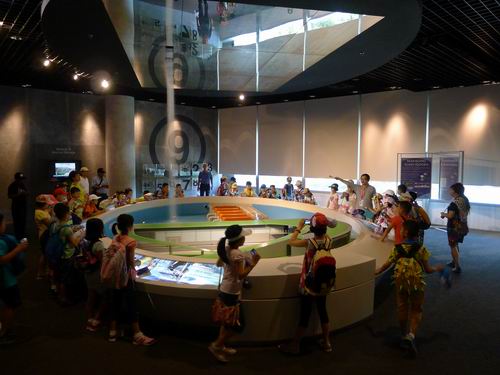参观滨海湾堤坝,导游给孩子们介绍堤坝的工作原理