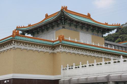 台北故宫博物院,位于外双溪,占地20甲,启建于1962年,于1965年孙中山诞辰纪念日落成;整座建筑仿北京故宫博物院的形式,采中国宫廷式设计,外观雄伟壮丽,背负青山,是中国收藏文物艺术菁华所在。