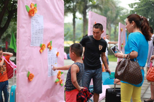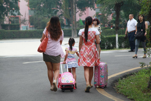 8月31日一早,一年级新入学的小朋友在爸爸妈妈的陪伴下,背上小书包,拉着行李来到美丽的校园,开始了快乐的小学生活。