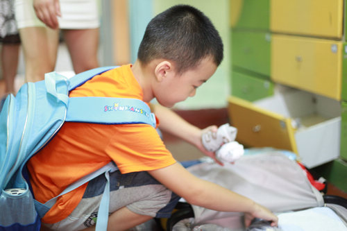 来到寝室,在生活老师的指导下,自己收拾自己的衣物