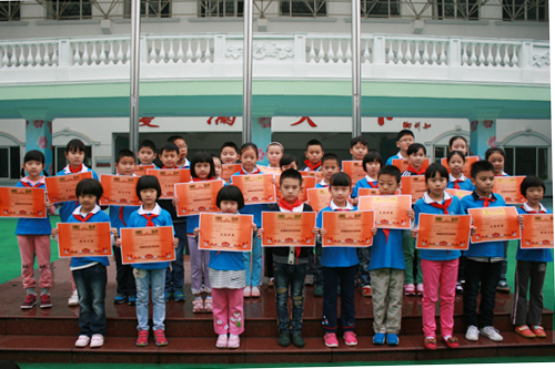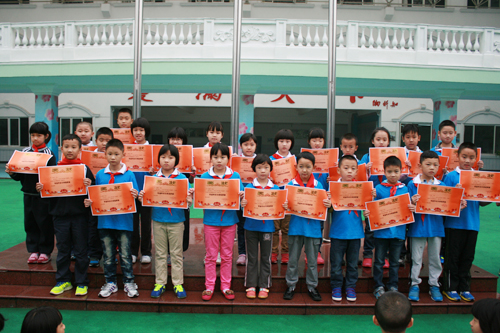 为评为“先进班级”、“零意外安全事故班级”、“基础建设优秀班级”、“特色中队”的班级颁奖