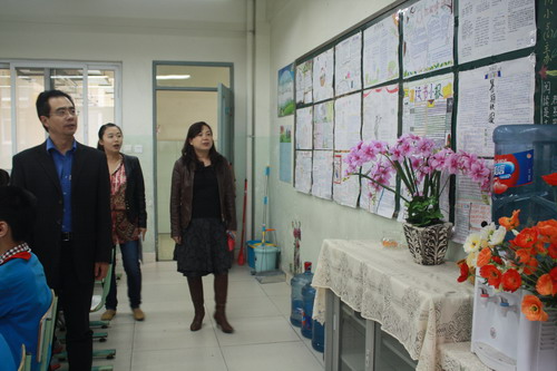 校领导到各班参观班级文化建设