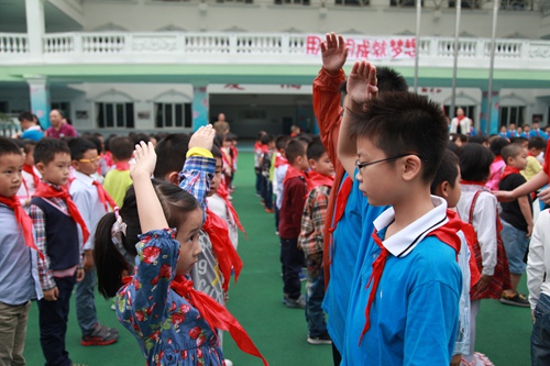 Today, we have ushered in a new force. More than 400 new young pioneers of the grade one will be honored to join the young pioneers organization.