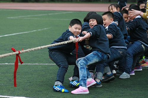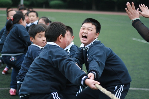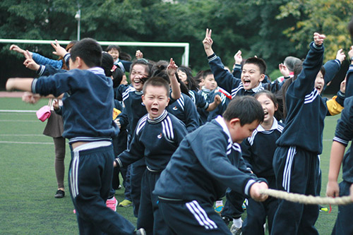 On October 15th afternoon, led by the PE teachers ,an interesting tug -of –war was held in grade four.