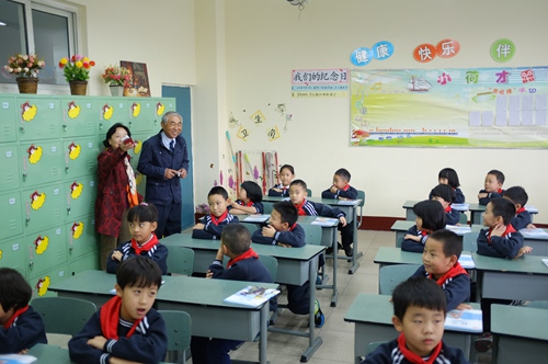 On October 21st morning, Mr. Saito,the principal of Li yi gong nan primary school in Japan, came to our school for a friendly visit. Mr. Saito visited our school accompanied by principal Ms Mi.