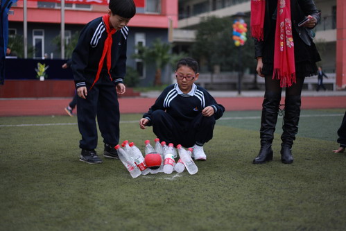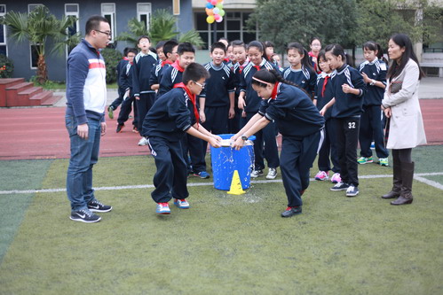 开幕式后是学生集体项目。上午进行的项目有集体跳长绳、保龄球大比拼、挑山工接力、蚂蚁运水等。学生集体项目要求全班学生集体参加,通过相互协作完成比赛,注重对学生合作能力的培养,树立集体荣誉感。