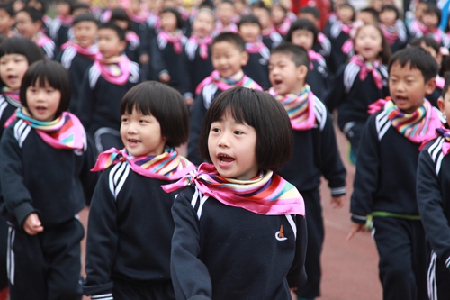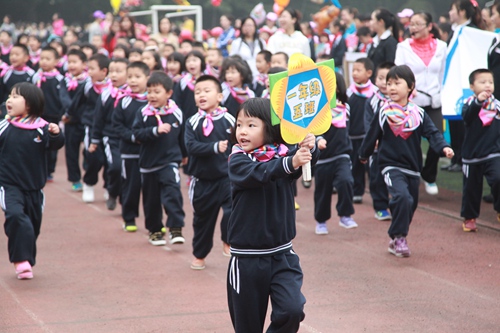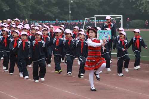 一年级的小朋友第一次参加体育节,心中充满了期待