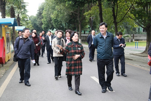 On November 12th morning , under the leadership of Zhou Xu, director of the Education Commission of Chongqing , more than 30 people of Chongqing education delegation came to our school for a visit. Principal Ms Mi led the guests to visit the campus and she introduced the ideas and practice of running school. Some leaders of Sichuan Province Education Office and Chengdu bureau of education accompanied.