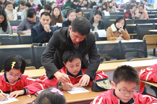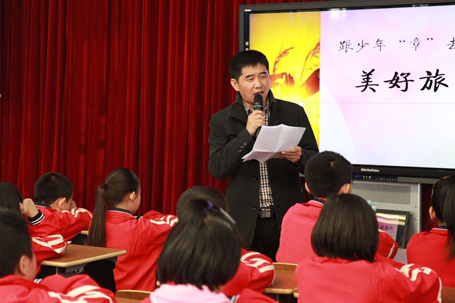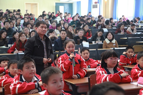 On November 20th afternoon, Jinniu District primary school Chinese composition teaching seminar was held in my school . Nearly three hundred Chinese teachers took part in the activity. Chinese teacher in our school Mr Zhang and the children in class seven grade four gave a special composition class together. Mr Zhang showed ingenuity design and the sentiment , as well as the children gave excellent performance, which left a deep impression to all the teacher.