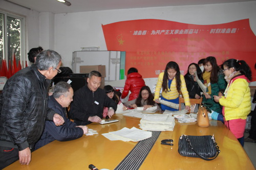 考试结束以后,老师们对试卷进行装订密封,交叉阅卷。