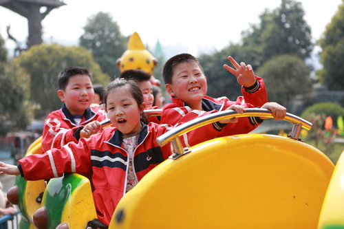 游玩间隙,成外附小孩子们的文明有序给园区管理员留下了深刻的印象。