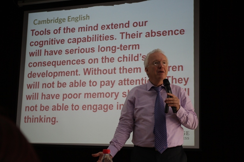 4月17日,由外研社主办的2014外研社原版教材教学研讨会在成都外国语学校举行,会上 由在世界51个国家通用的教材 Super Minds和English in Mind的首席作者Herbuert Puchta博士(国际英语教师协会主席)做了精彩的演讲,我校钟灵芝副校长亲自带队参加,老师们学习到了最前沿的英语教学理念 。