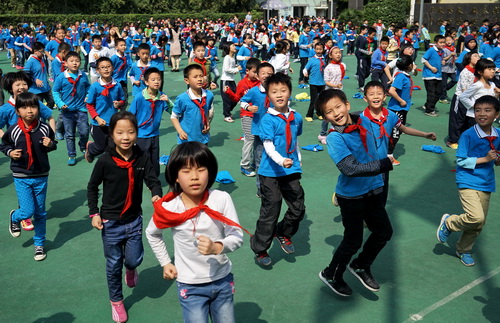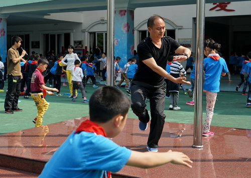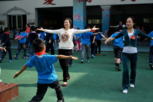 大课间时段,孩子们在老师的带领下活动