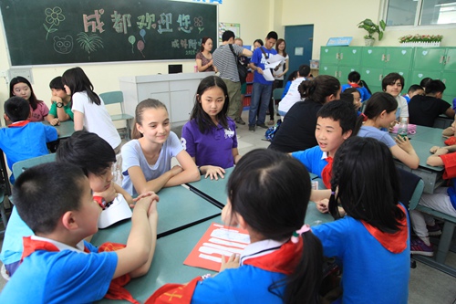 On May 6th afternoon,teachers and students from the Shanghai international school came to our school for a visit. They have classes and play together with the students of class four grade one . All of them had a happy a time in the afternoon.
