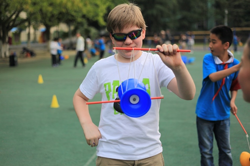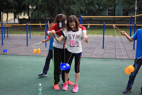 教国际学校的同学一起抖空竹