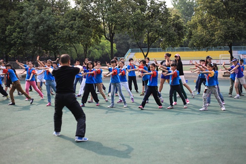 老师带同学们一起打太极