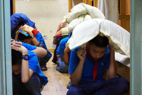 5月14日下午,我校进行防震抗灾演练。在没有事先通知学生的情况下,我校于14日下午16时12分吹响了象征地震来临的紧急哨音,各班在当堂任课老师的带领下有序地撤离到安全地带。地震、火灾等突发情况,常常给人们带来沉痛的灾难。我们力求通过多次的紧急练习,让孩子们掌握面对这种突发事件的应对方法,防患于未然!