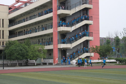 On May 14th afternoon, an earthquake emergency drill was carried out in Zhonghai campus at 16:12. Without notification in advance , students who under the guidance of the teachers orderly went away to the safe place when sounded the symbol of earthquake emergency whistle. Earthquake, fire and other emergency situations often take people a painful disaster. So we try to let the children learn how to cope with the unexpected events by a number of emergency exercises.