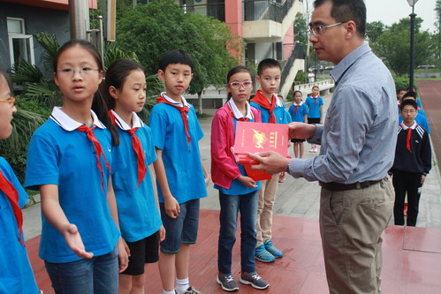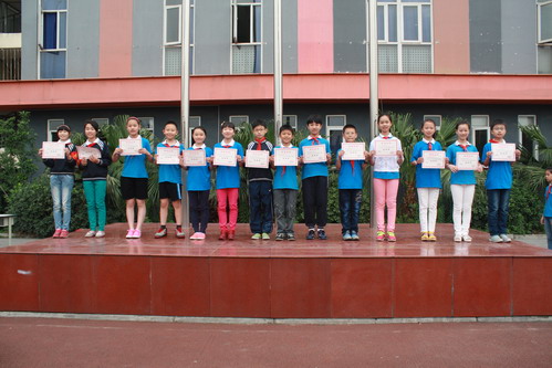 On May 26th, the fifteenth weeks morning gathering was held in Zhonghai campus. On the children's day, the fifth grade students will change the classroom into a trade market. They will exchange their own idle items with others. And they will learn how to evaluate and choose what they need. Then Ms. Zhu informed the specific rules of the event. At last, the leaders of school gave the awards for "Jinniu District good student", "Jinniu District outstanding student cadres" and "Jinniu District advanced class" .